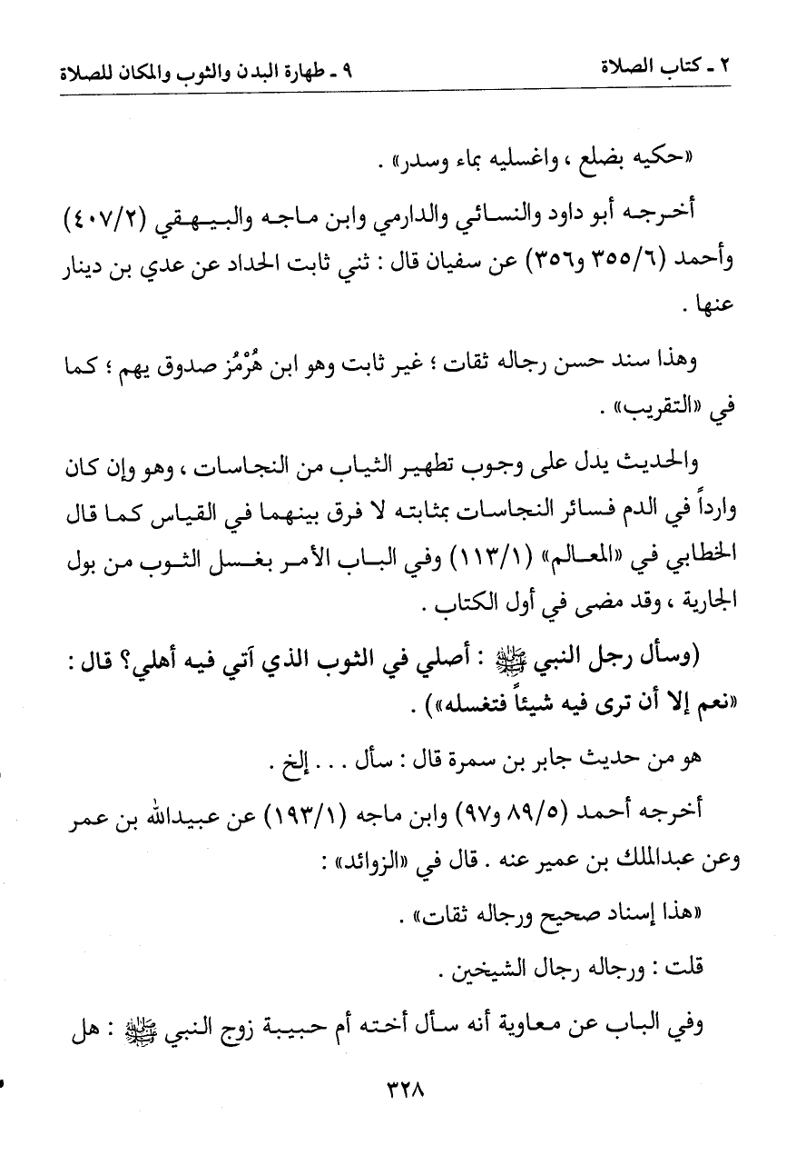 (وسأل رجل النبي صلى الله عليه وسلم: أصلي في الثوب الذي آتي فيه أهلي؟ قال: (نعم إلا أن ترى فيه شيئا فتغسله)