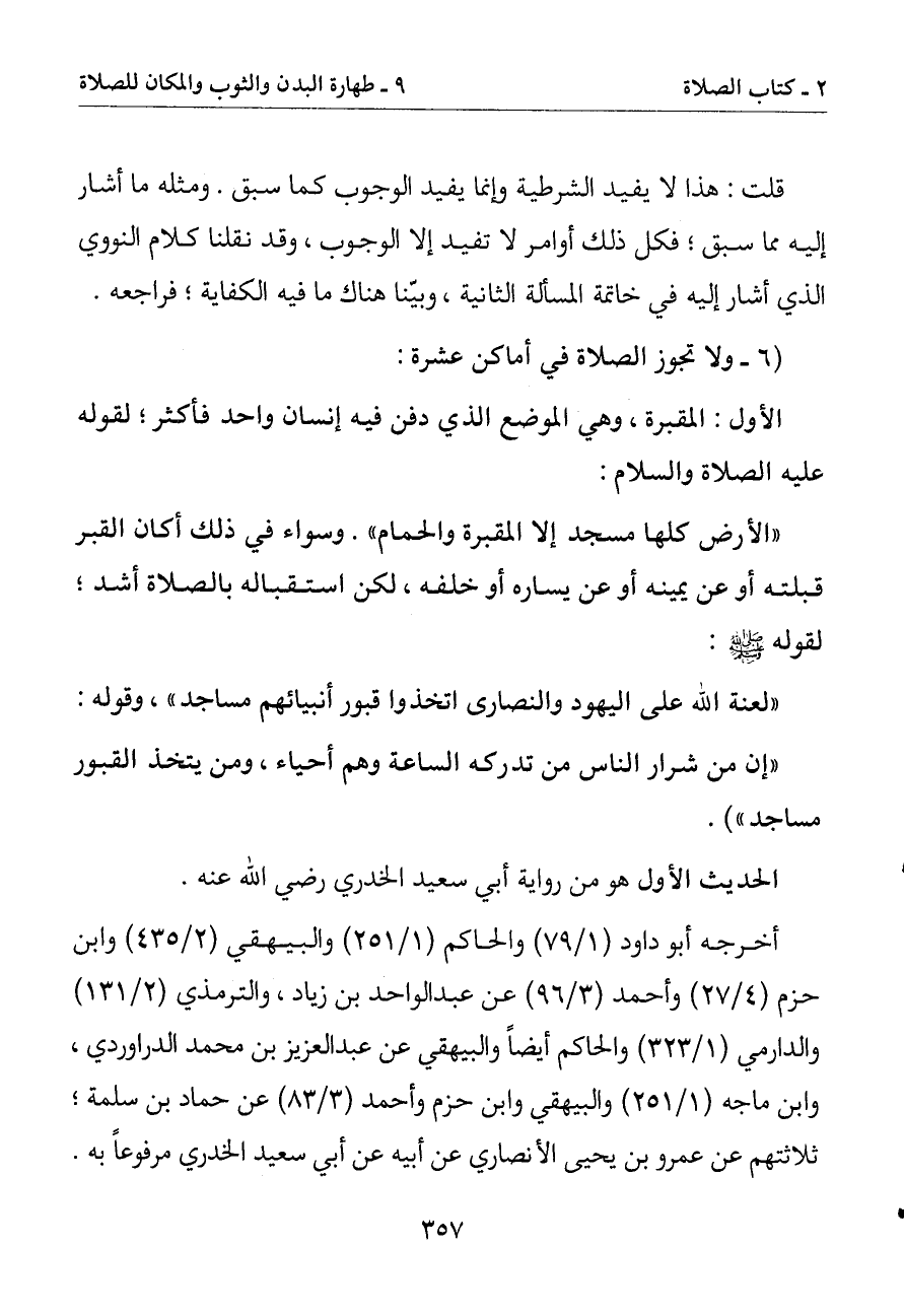 (لعنة الله على اليهود والنصارى اتخذوا قبور أنبيائهم مساجد) وقوله: