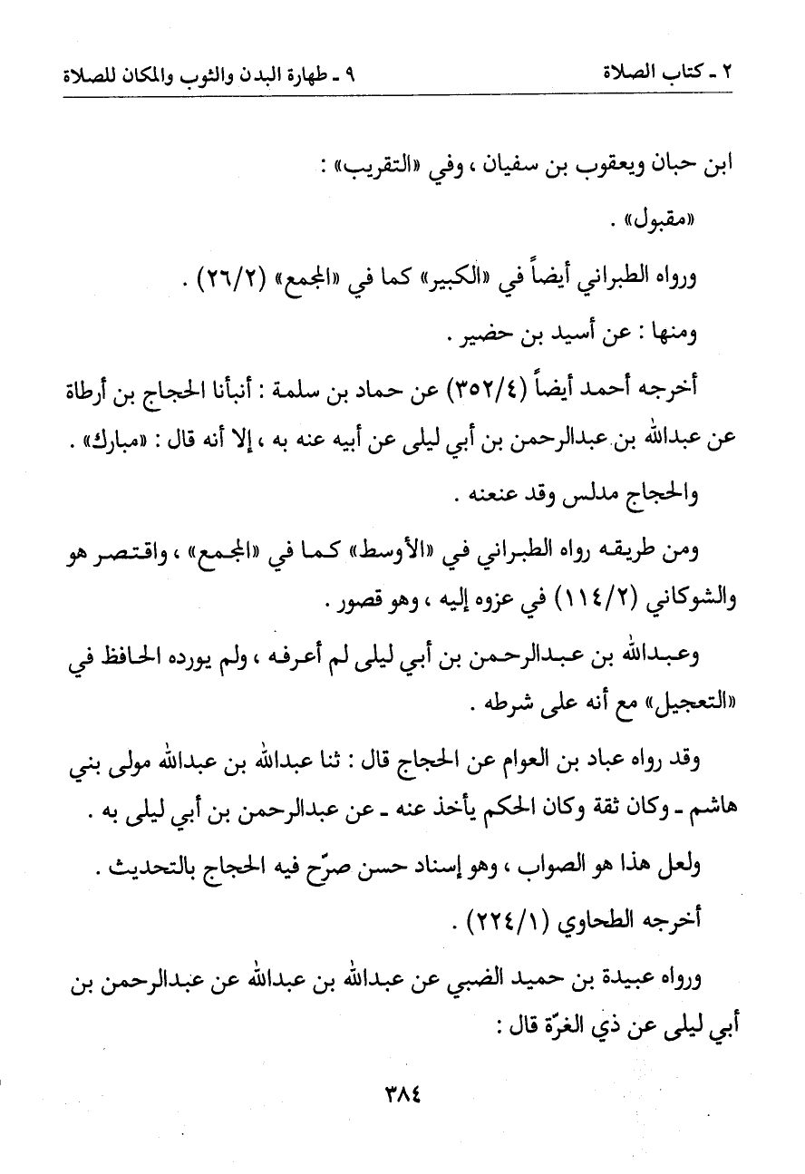 وقد رواه عباد بن العوام عن الحجاج قال: ثنا عبد الله بن عبد الله مولى بنى هاشم - وكان ثقة وكان الحكم يأخذ عنه - عن عبد الرحمن بن أبي ليلى به