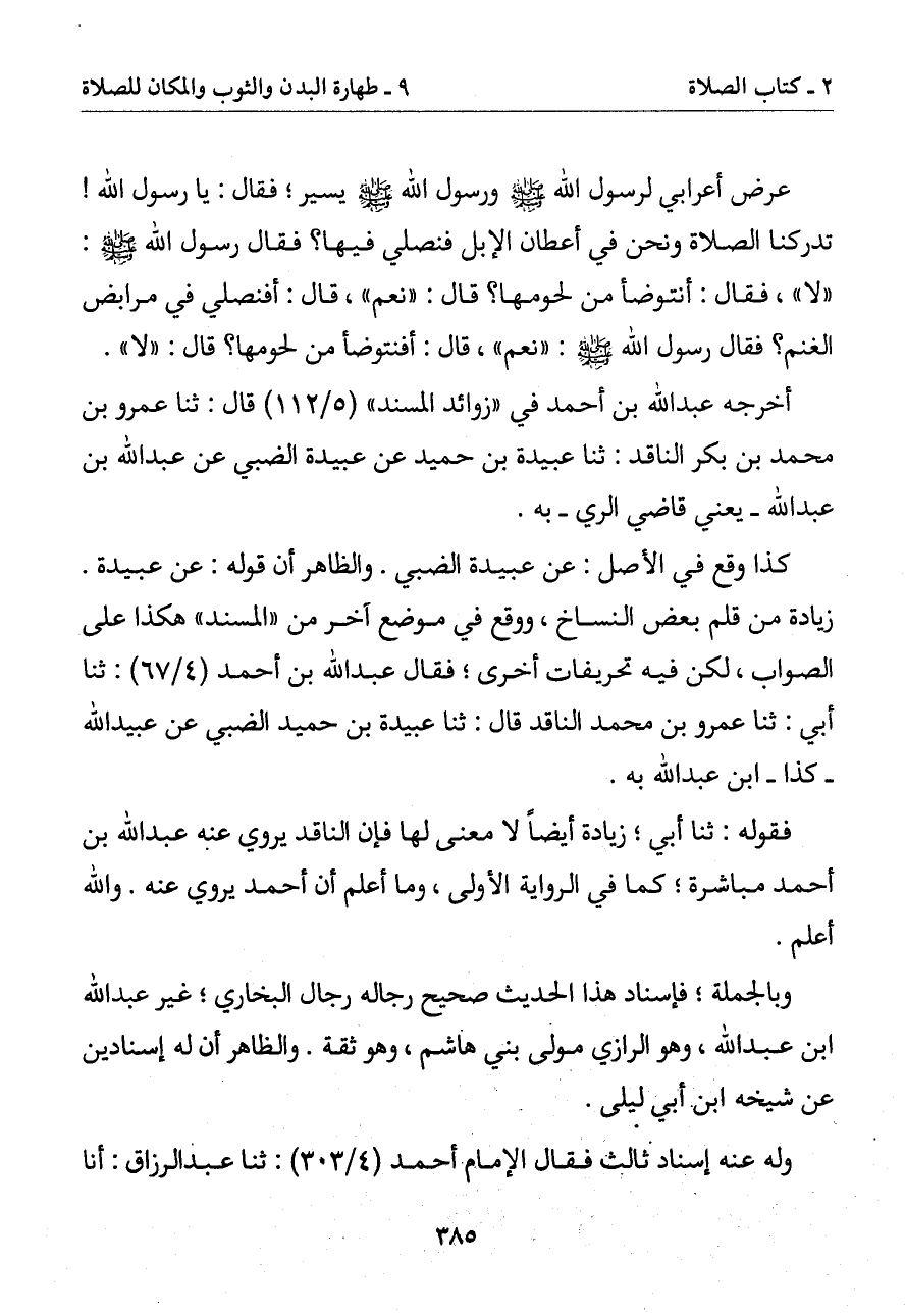 وبالجملة فإسناد هذا الحديث صحيح رجاله رجال البخاري غير عبد الله ابن عبد الله وهو الرازي مولى بني هاشم وهو ثقة. والظاهر أن له إسنادين عن شيخه ابن أبي ليلى