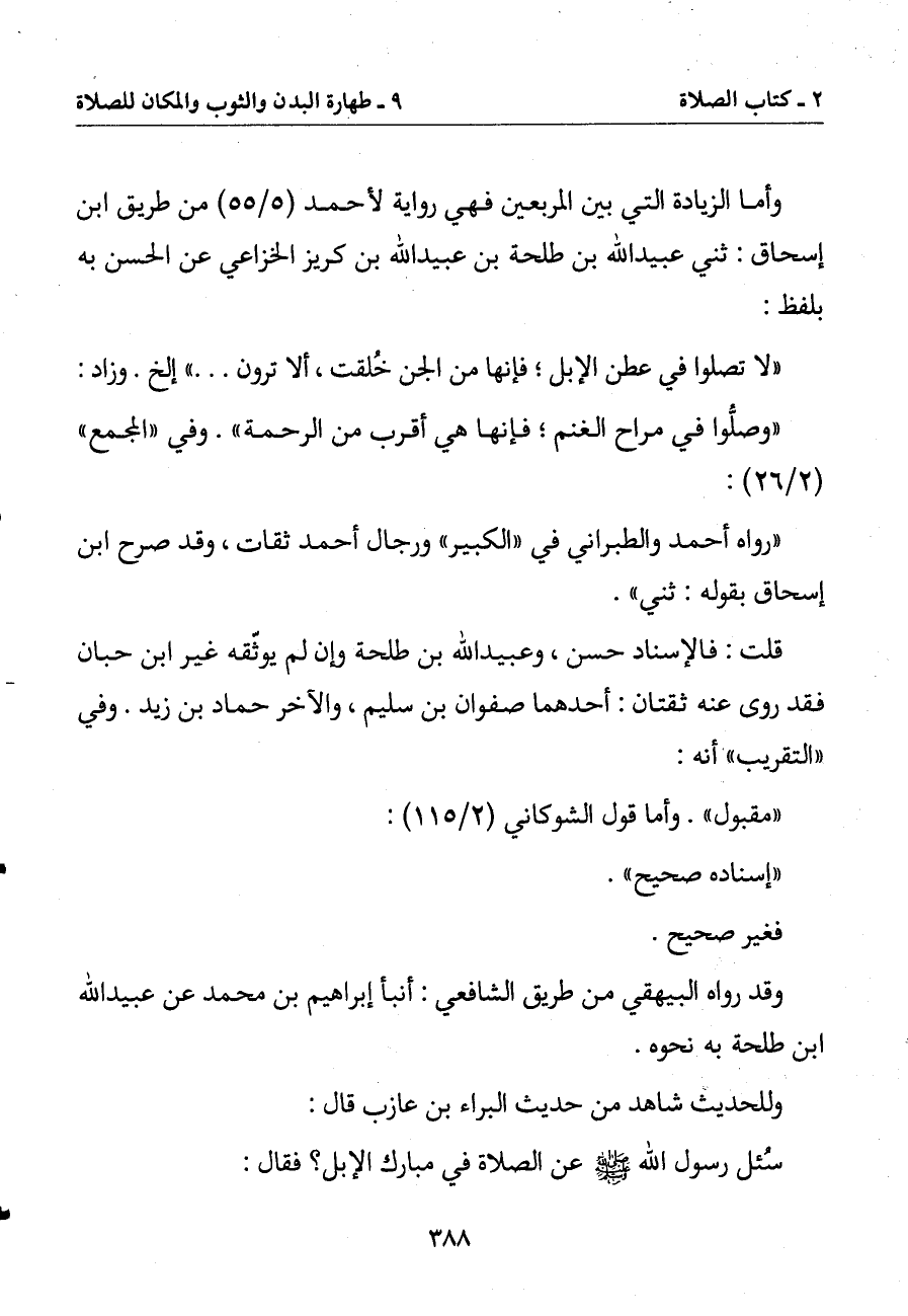 سئل رسول الله صلى الله عليه وسلم عن الصلاة في مبارك الإبل؟ فقال: