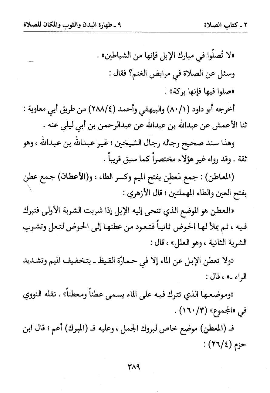 ف (المعطن) موضع خاص لبروك الجمل وعليه ف (المبرك) أعم قال ابن حزم: