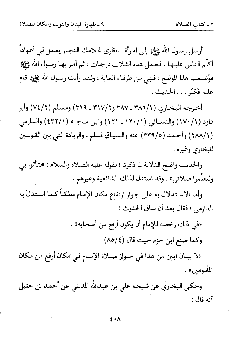 والحديث واضح الدلالة لما ذكرنا لقوله عليه الصلاة والسلام: (لتأتموا بي ولتعلموا صلاتي). وقد استدل لذلك الشافعية وغيرهم
