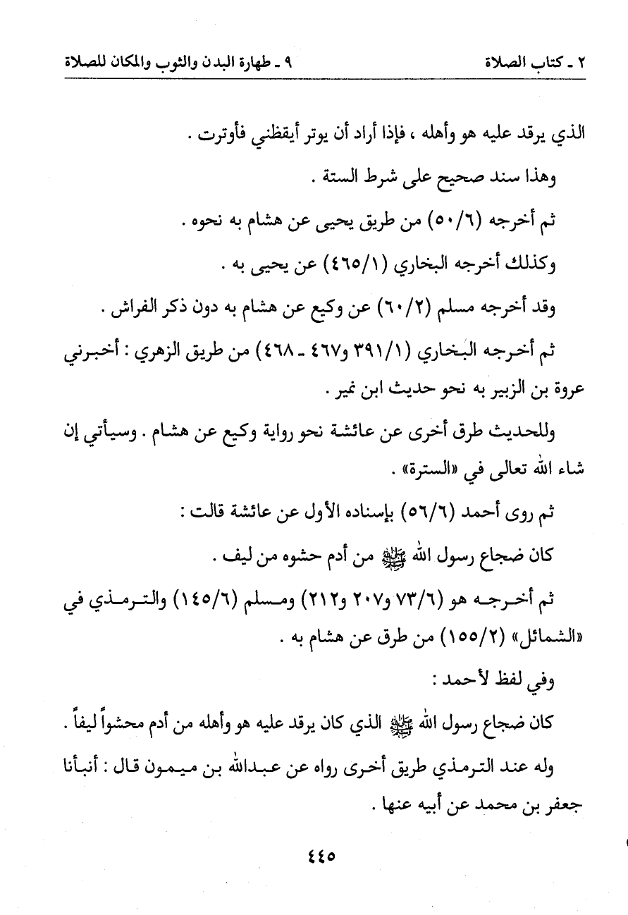كان ضجاع رسول الله صلى الله عليه وسلم من أدم حشوه ليف
