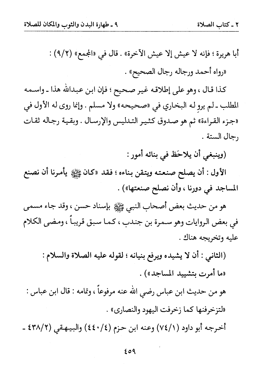 (الثاني: أن لا يشيده ويرفع بنيانه لقوله عليه الصلاة والسلام: