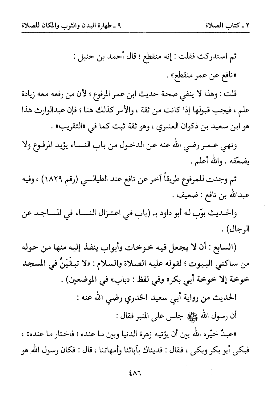 (نافع عن عمر منطقع)