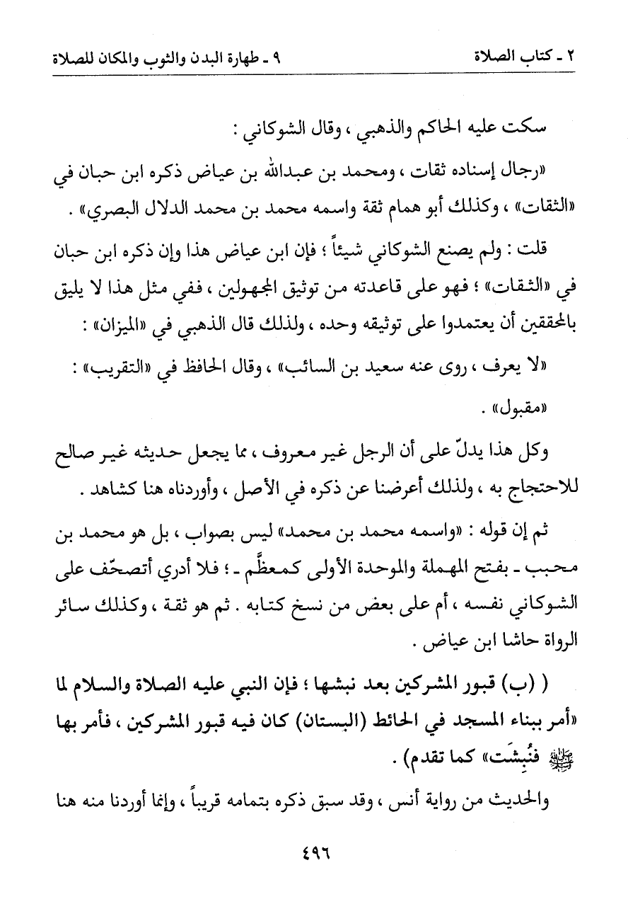 (ب) قبور المشركين بعد نبشها فإن النبي عليه الصلاة والسلام لما (أمر ببناء المسجد في الحائط (البستان) كان فيه قبور المشركين فأمر بها صلى الله عليه وسلم فنبشت) كما تقدم)