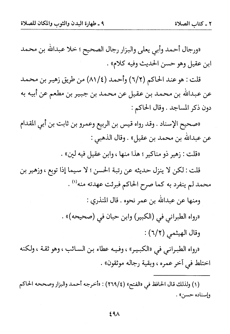 قلت: لكن لا ينزل حديثه عن رتبة الحسن لا سيما إذا توبع وزهير بن محمد لم ينفرد به كما صرح الحاكم فبرئت عهدته منه (1)
