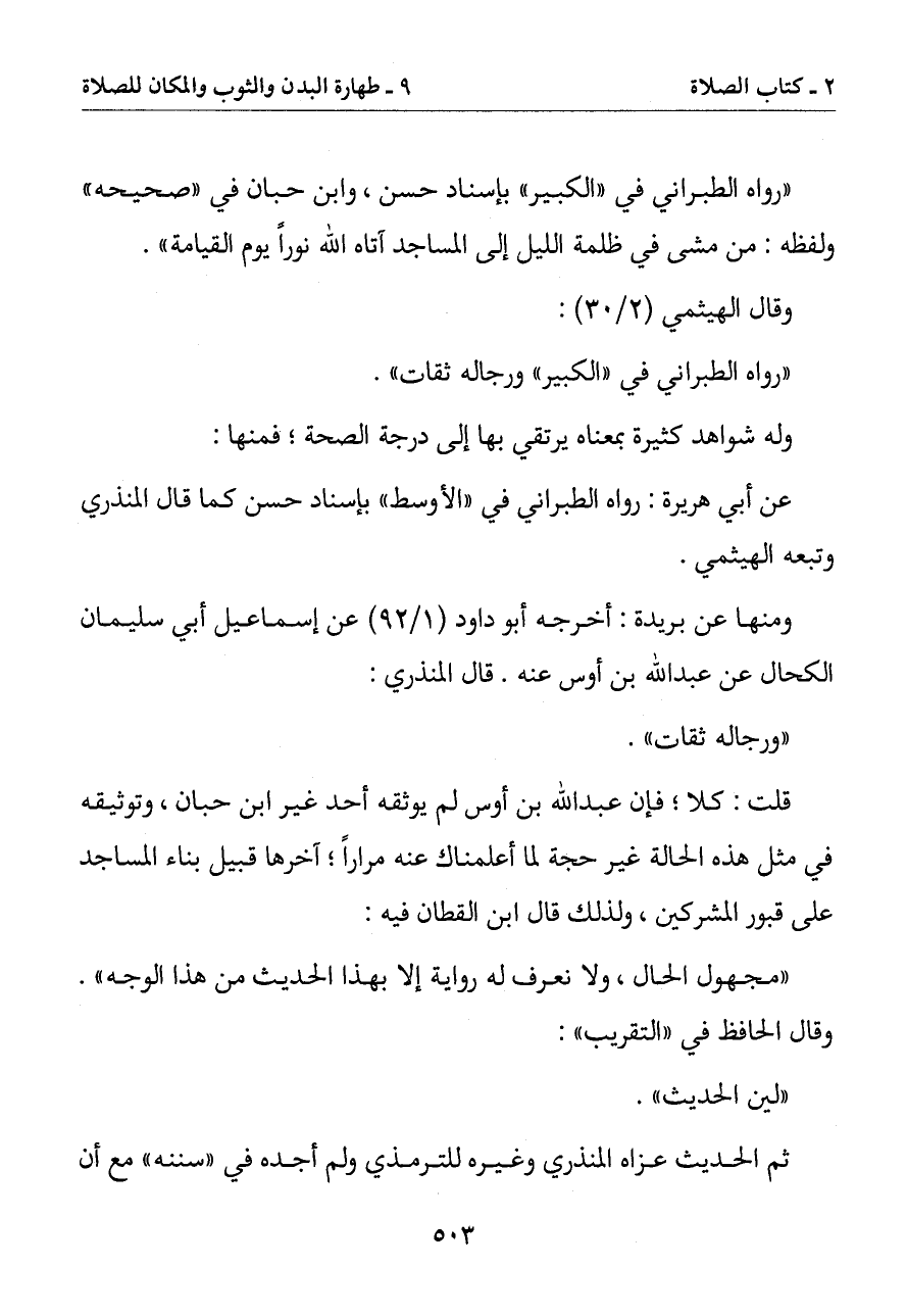 (رواه الطبراني في (الكبير) بإسناد حسن وابن حبان في (صحيحه) ولفظه: من مشى في ظلمة الليل إلى المساجد آتاه الله نورا يوم القيامة)
