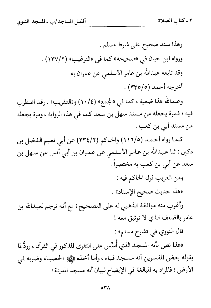 (هذا نص بأنه المسجد الذي أسس على التقوى المذكور في القرآن ورد لما يقوله بعض المفسرين أنه مسجد قباء وأما أخذه صلى الله عليه وسلم الحصباء وضربه في الأرض فالمراد به المبالغة في الإيضاح لبيان أنه مسجد المدينة)
