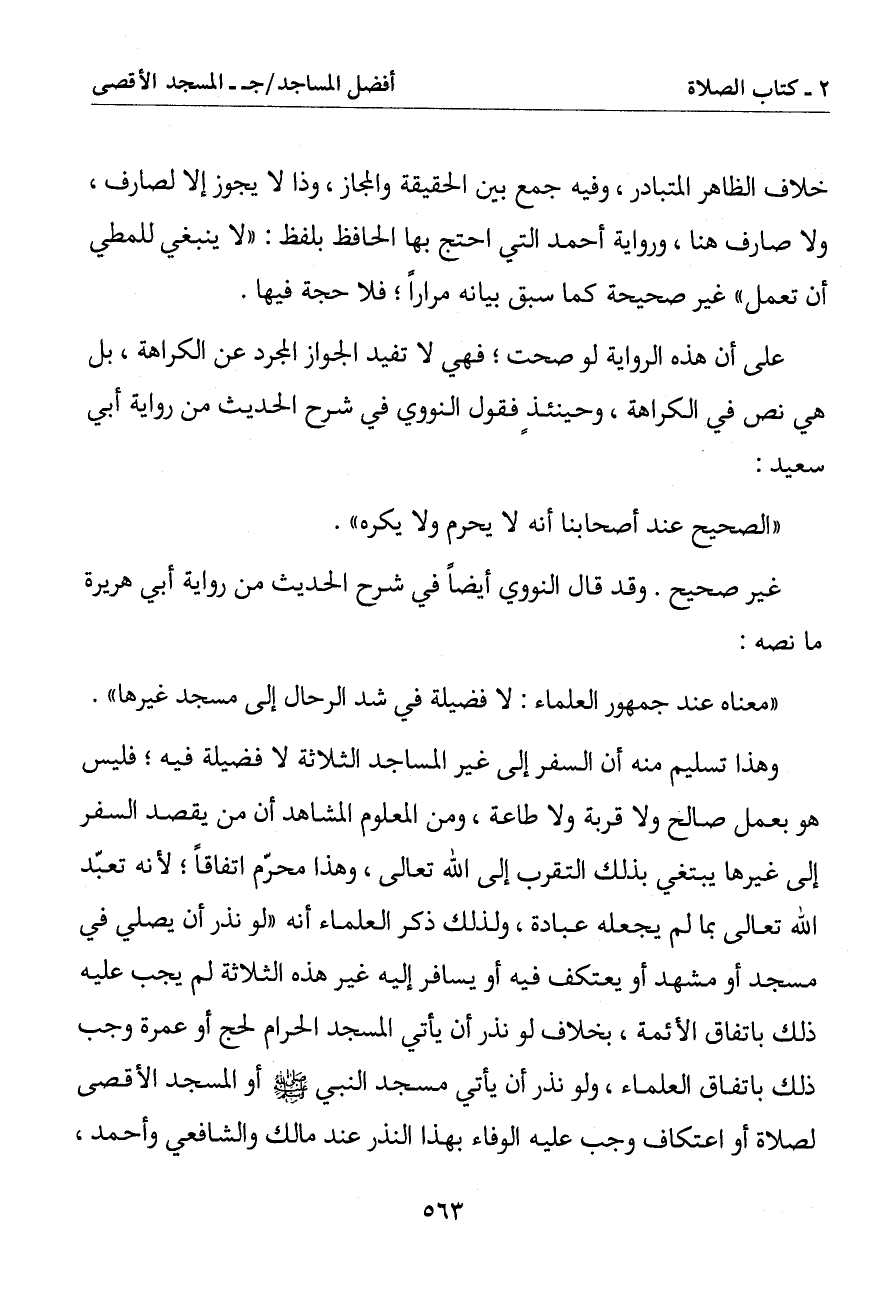 خلاف الظاهر المتبادر وفيه جمع بين الحقيقة والمجاز وهذا لا يجوز إلا لصارف ولا صارف هنا ورواية أحمد التي احتج بها الحافظ بلفظ: (لا ينبغي للمطي أن تعمل) غير صحيحة كما سبق بيانه مرارا فلا حجة فيها