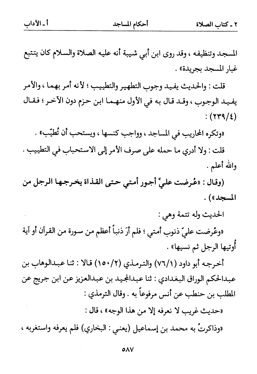 (وقال: (عرضت علي أجور أمتي حتى القذاة يخرجها الرجل من المسجد)