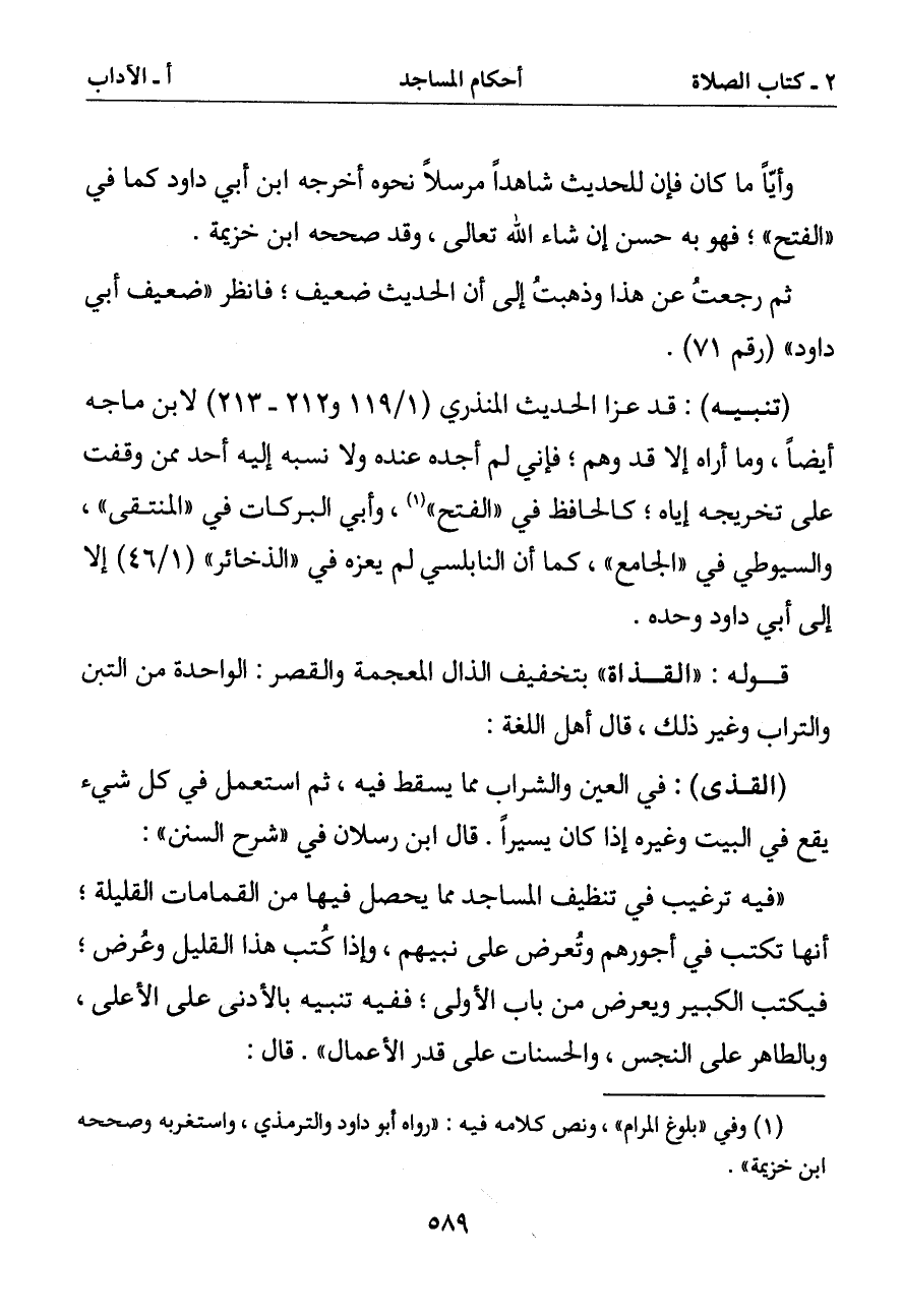 وأيا ما كان فإن للحديث شاهدا مرسلا نحوه أخرجه ابن أبي داود كما في (الفتح) فهو به حسن إن شاء الله تعالى وقد صححه ابن خزيمة