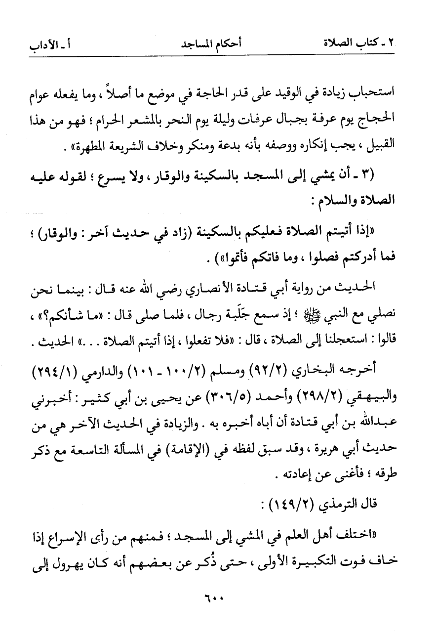 (3 - أن يمشي إلى المسجد بالسكينة والوقار ولا يسرع لقوله عليه الصلاة والسلام: