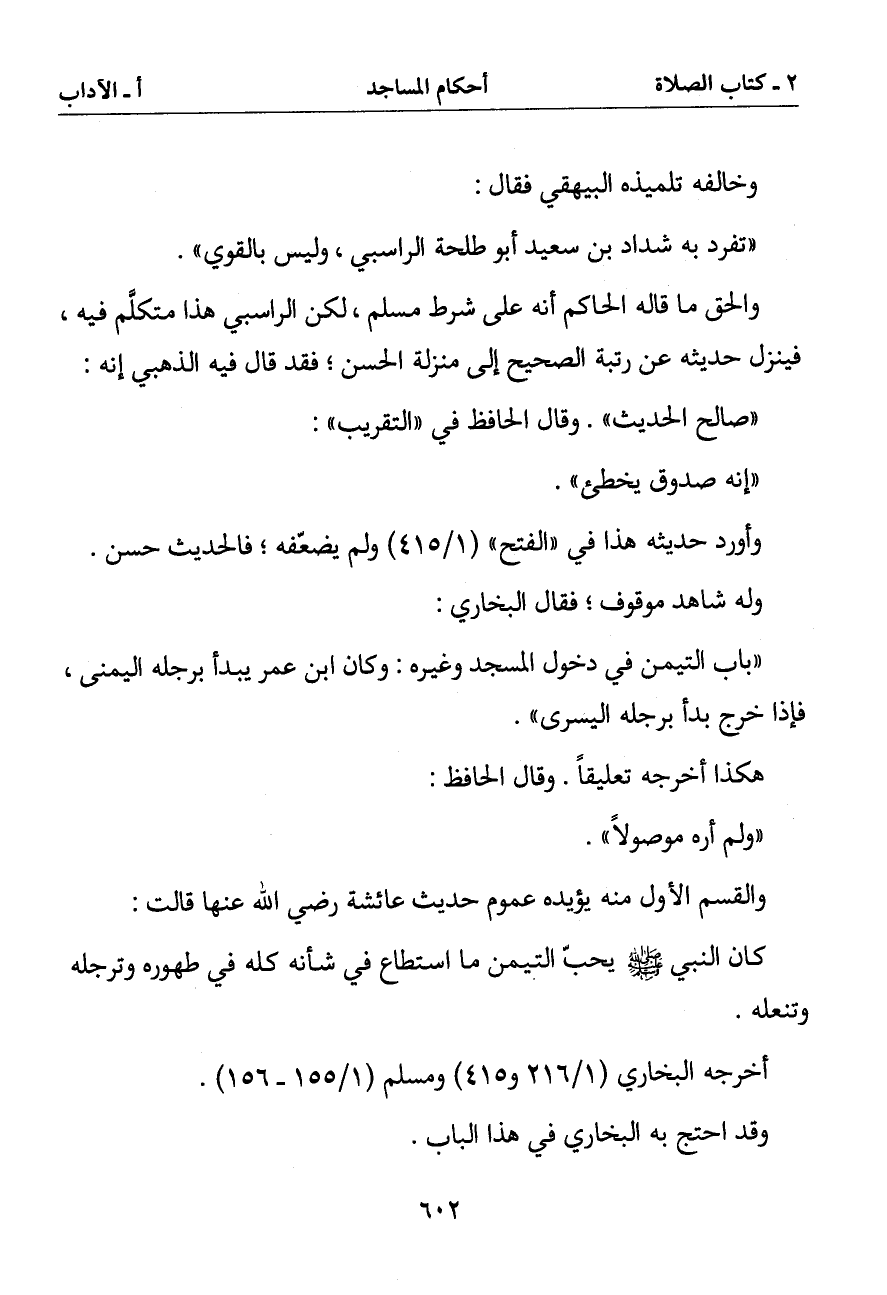 (باب التيمن في دخول المسجد وغيره: وكان ابن عمر يبدأ برجله اليمنى فإذا خرج بدأ برجله اليسرى)