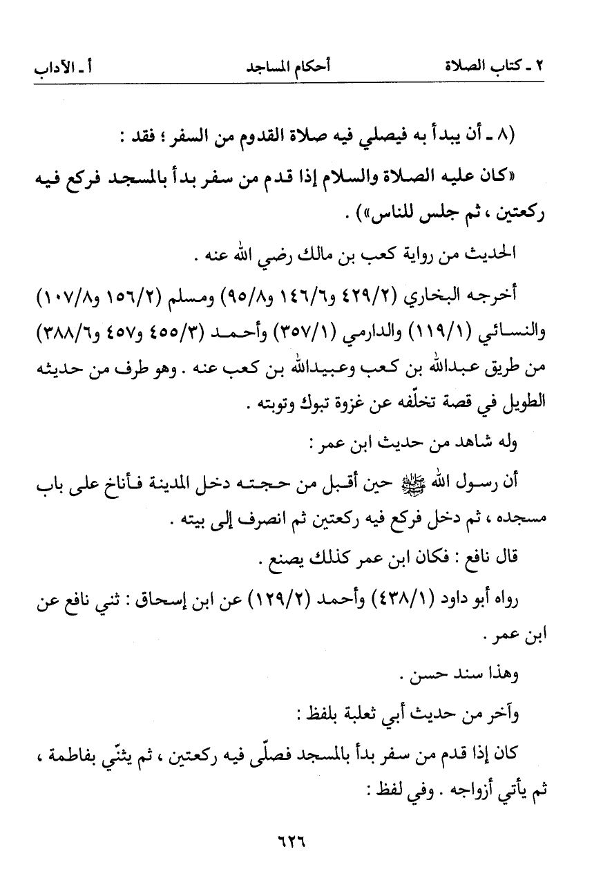 (كان عليه الصلاة والسلام إذا قدم من سفر بدأ بالمسجد فركع فيه ركعتين ثم جلس للناس)