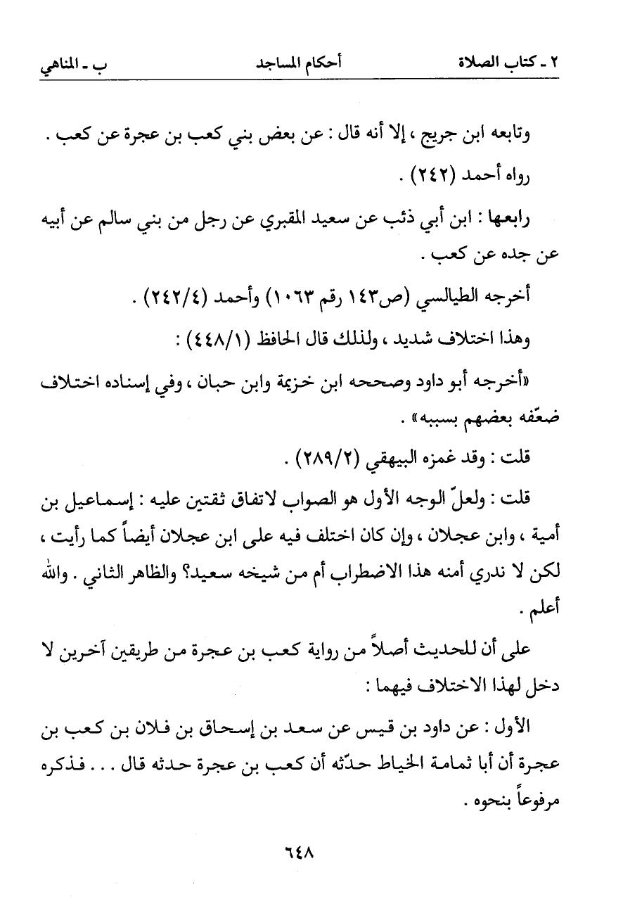 قلت: ولعل الوجه الأول هو الصواب لاتفاق ثقتين عليه: إسماعيل بن أمية وابن عجلان وإن كان اختلف فيه على ابن عجلان أيضا كما رأيت لكن لا ندري أمنه هذا الاضطراب أم من شيخه سعيد؟ والظاهر الثاني. والله أعلم