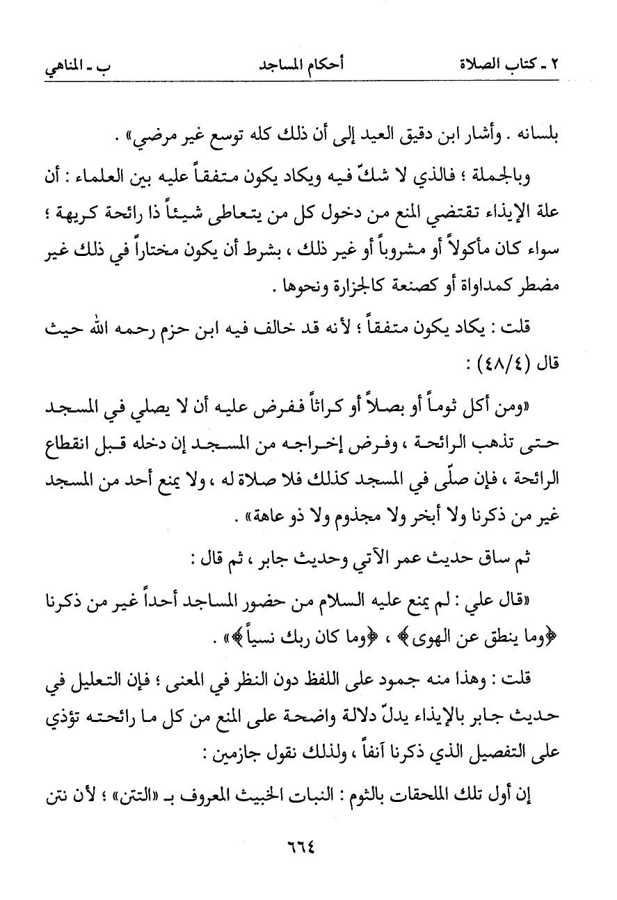 قلت: وهذا منه جمود على اللفظ دون النظر في المعنى فإن التعليل في حديث جابر بالإيذاء يدل دلالة واضحة على المنع من كل ما رائحته تؤذي على التفصيل الذي ذكرنا آنفا ولذلك نقول جازمين: