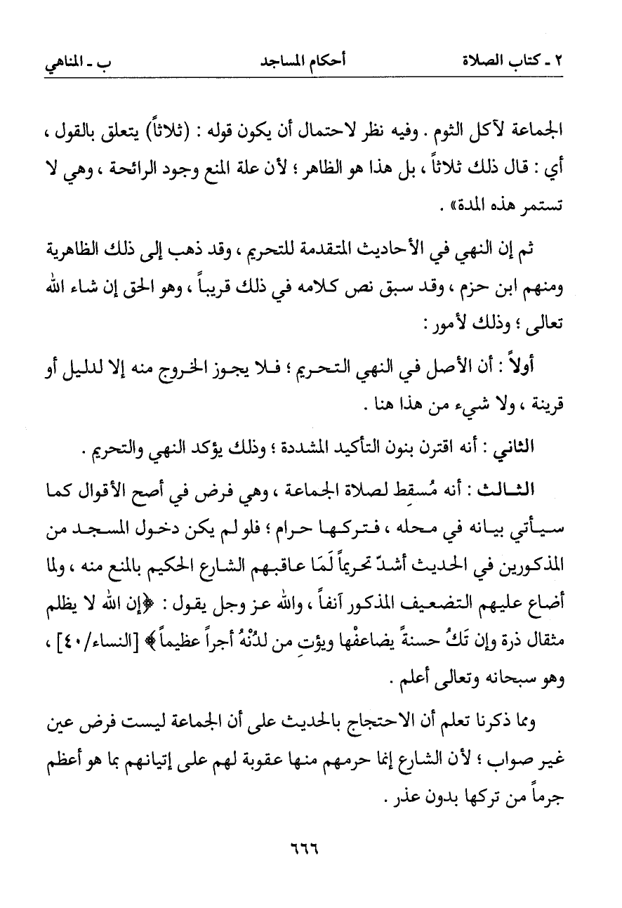 الثالث: أنه مسقط لصلاة الجماعة وهي فرض في أصح الأقوال كما سيأتي بيانه في محله فتركها حرام فلو لم يكن دخول المسجد من المذكورين في الحديث أشد تحريما لما عاقبهم الشارع الحكيم بالمنع منه ولما أضاع عليهم التضعيف المذكور آنفا والله عز وجل يقول: {إن الله لا يظلم مثقال ذرة وإن تك حسنة يضاعفها ويؤت من لدنه أجرا عظيما} [النساء / 40] وهو سبحانه وتعالى أعلم