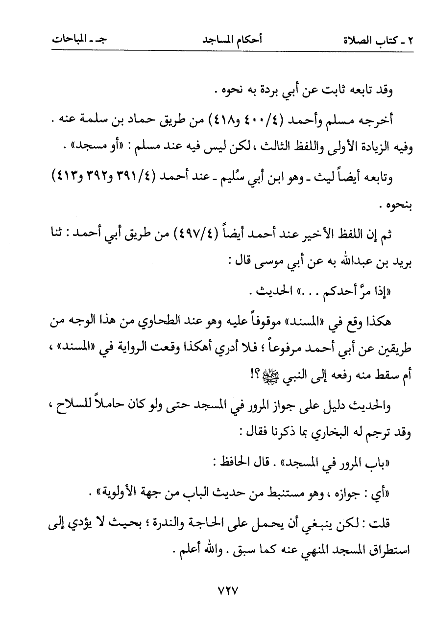 (باب المرور في المسجد). قال الحافظ: