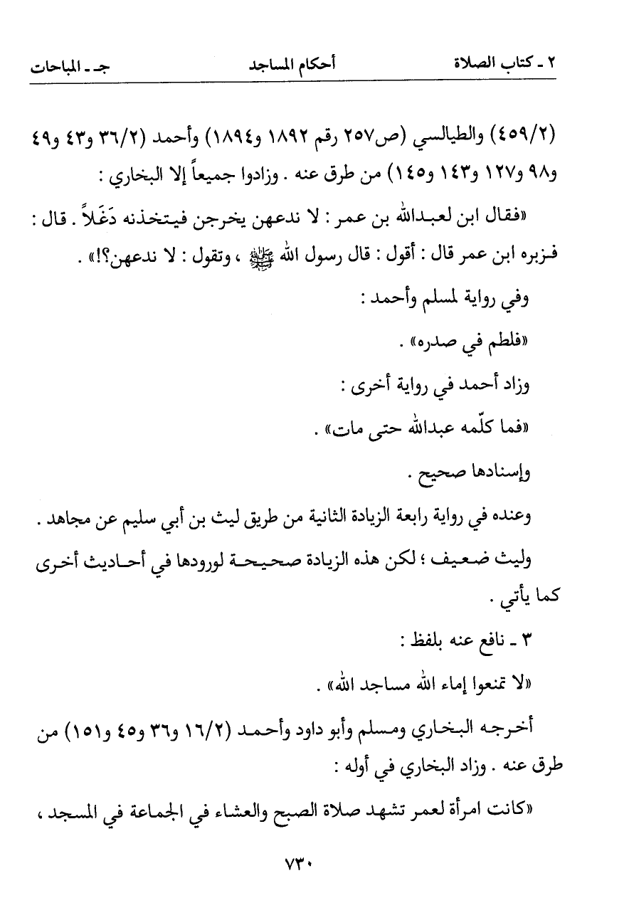 (فقال ابن لعبد الله بن عمر: لا ندعهن يخرجن فيتخذنه دغلا. قال: فزبره ابن عمر قال: أقول: قال رسول الله صلى الله عليه وسلم وتقول: لا ندعهن؟)