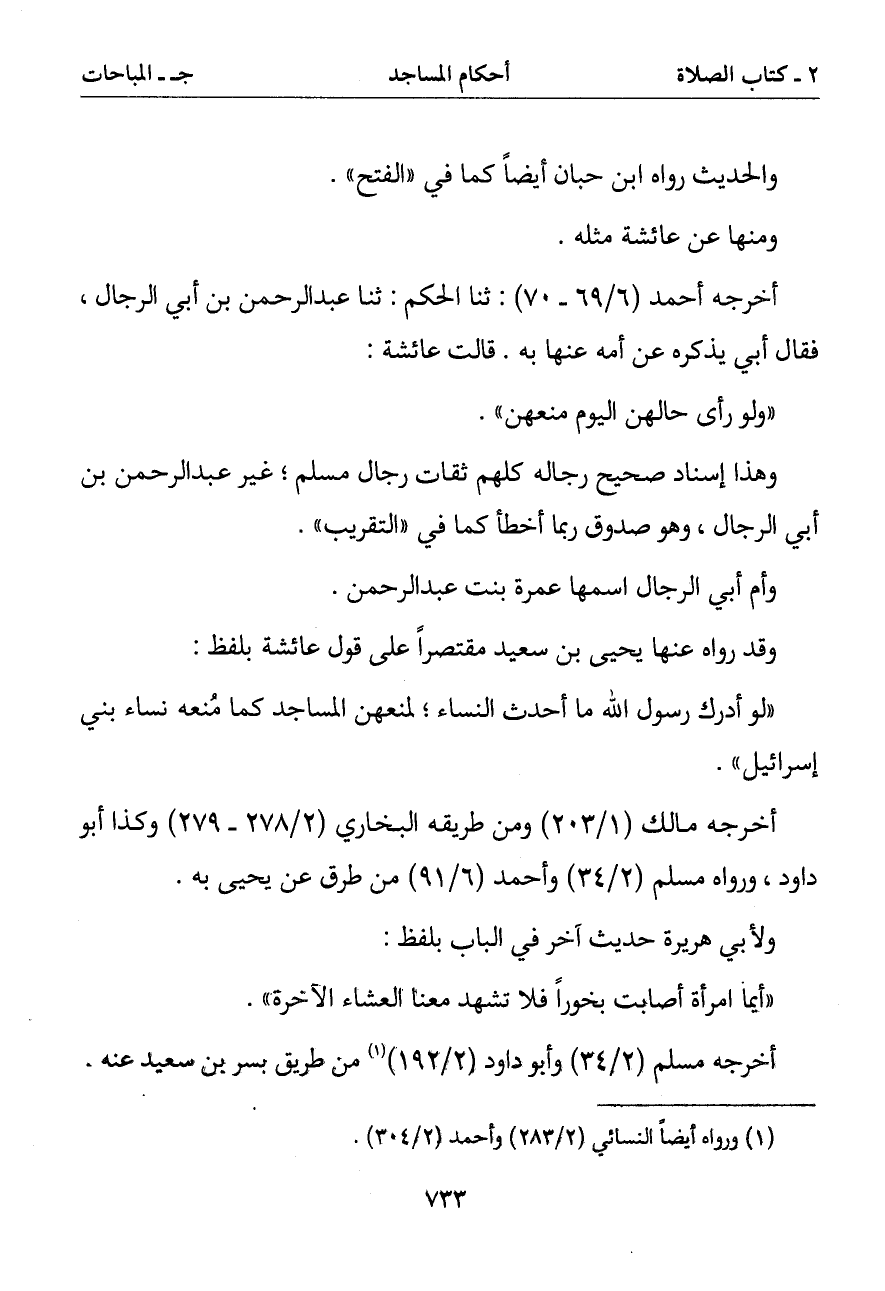 (لو أدرك رسول الله ما أحدث النساء لمنعهن المساجد كما منعه نساء بني إسرائيل)