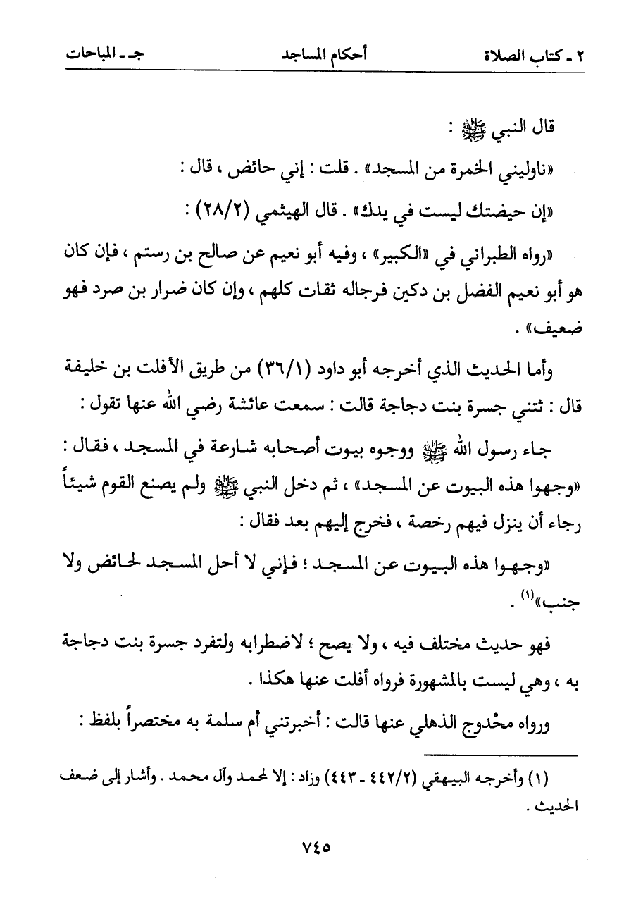 (وجهوا هذه البيوت عن المسجد فإني لا أحل المسجد لحائض ولا جنب) (1)