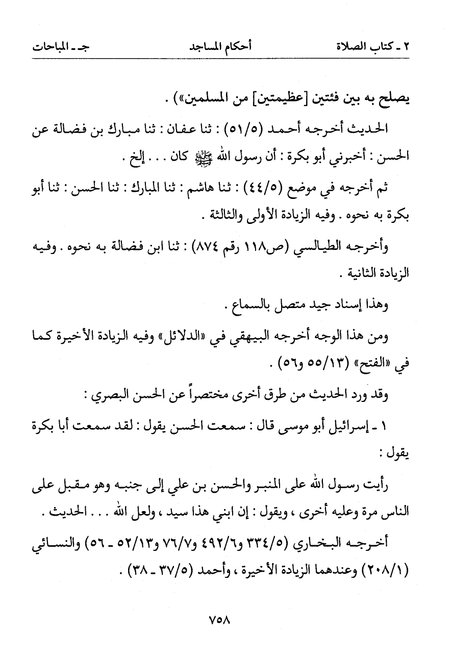 1 - إسرائيل أبو موسى قال: سمعت الحسن يقول: لقد سمعت أبا بكرة يقول: