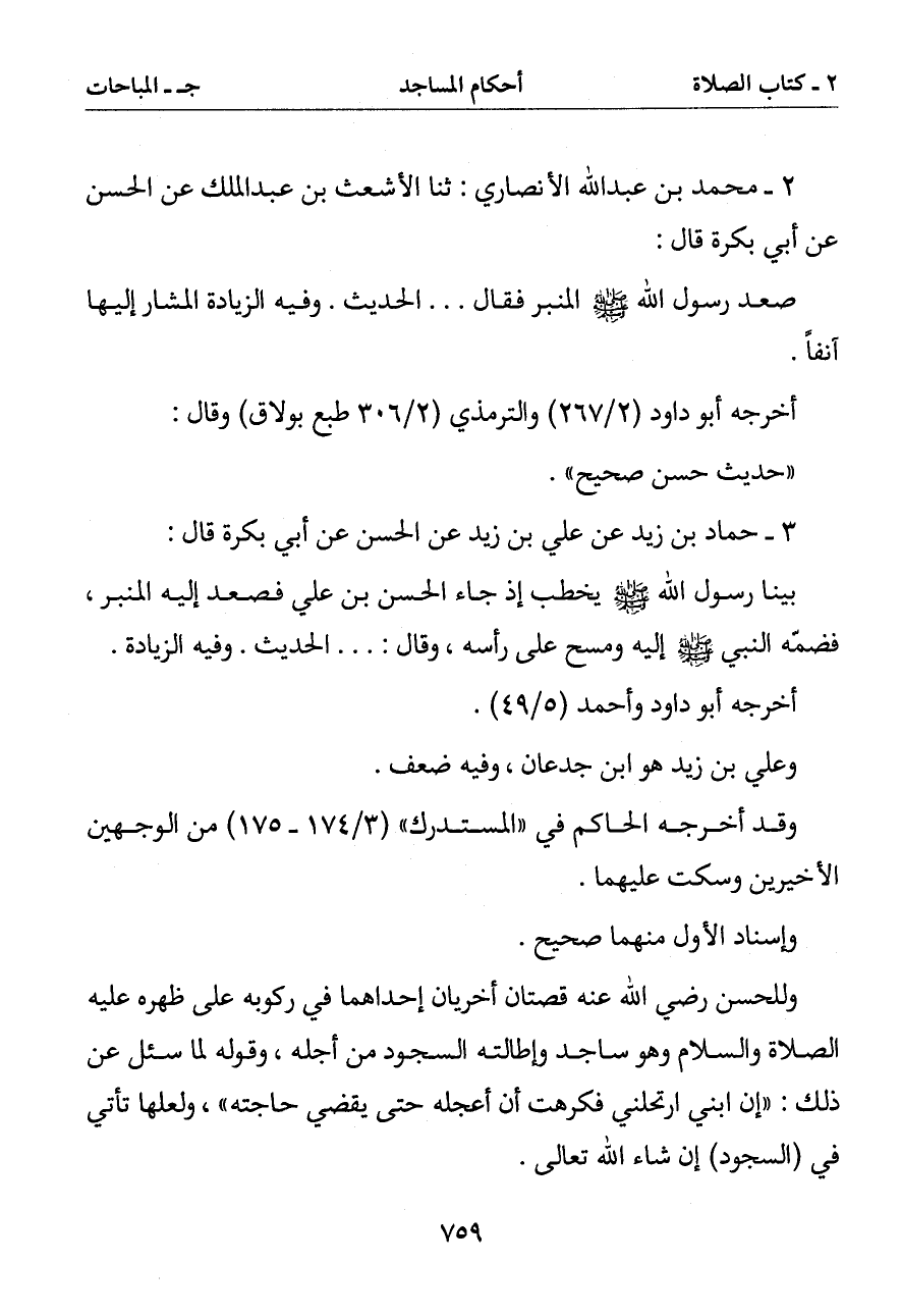 وللحسن رضي الله عنه قصتان أخريان إحداهما في ركوبه على ظهره عليه الصلاة والسلام وهو ساجد وإطالته السجود من أجله وقوله لما سئل عن ذلك: (إن ابني ارتحلني فكرهت أن أعجله حتى يقضي حاجته) ولعلها تأتي في (السجود) إن شاء الله تعالى
