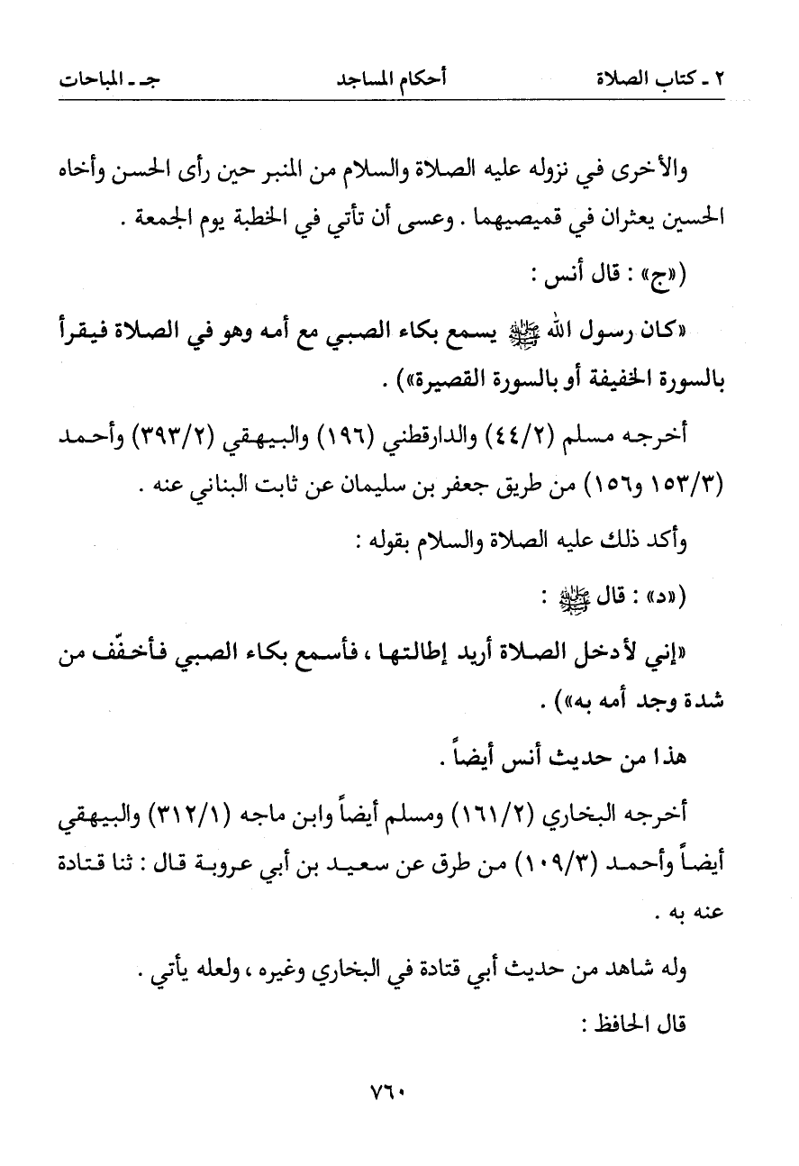 (إني لأدخل الصلاة أريد إطالتها فأسمع بكاء الصبي فأخفف من شدة وجد أمه به)