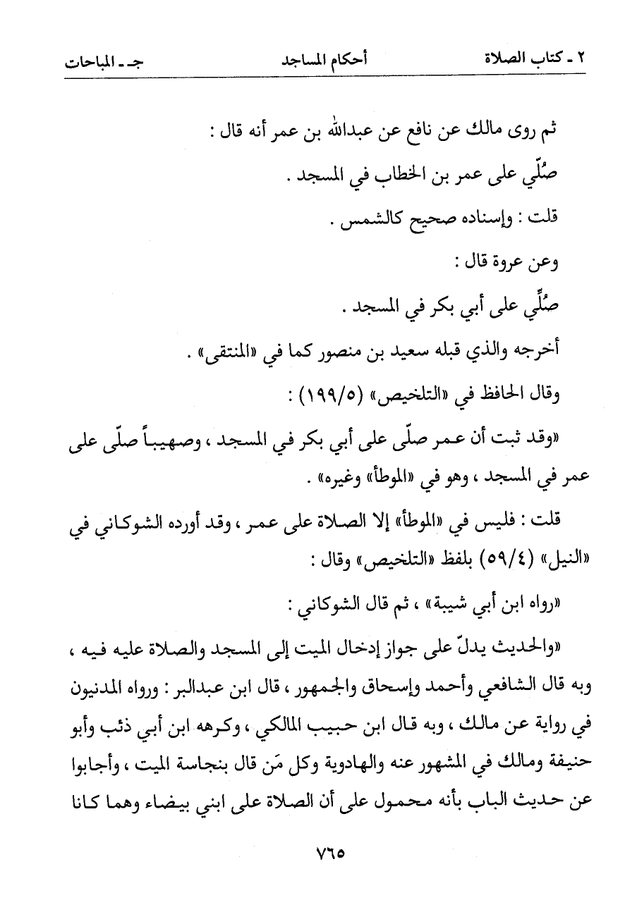 قلت: فليس في (الموطأ) إلا الصلاة على عمر وقد أورده الشوكاني في (النيل) بلفظ (التلخيص) وقال:
