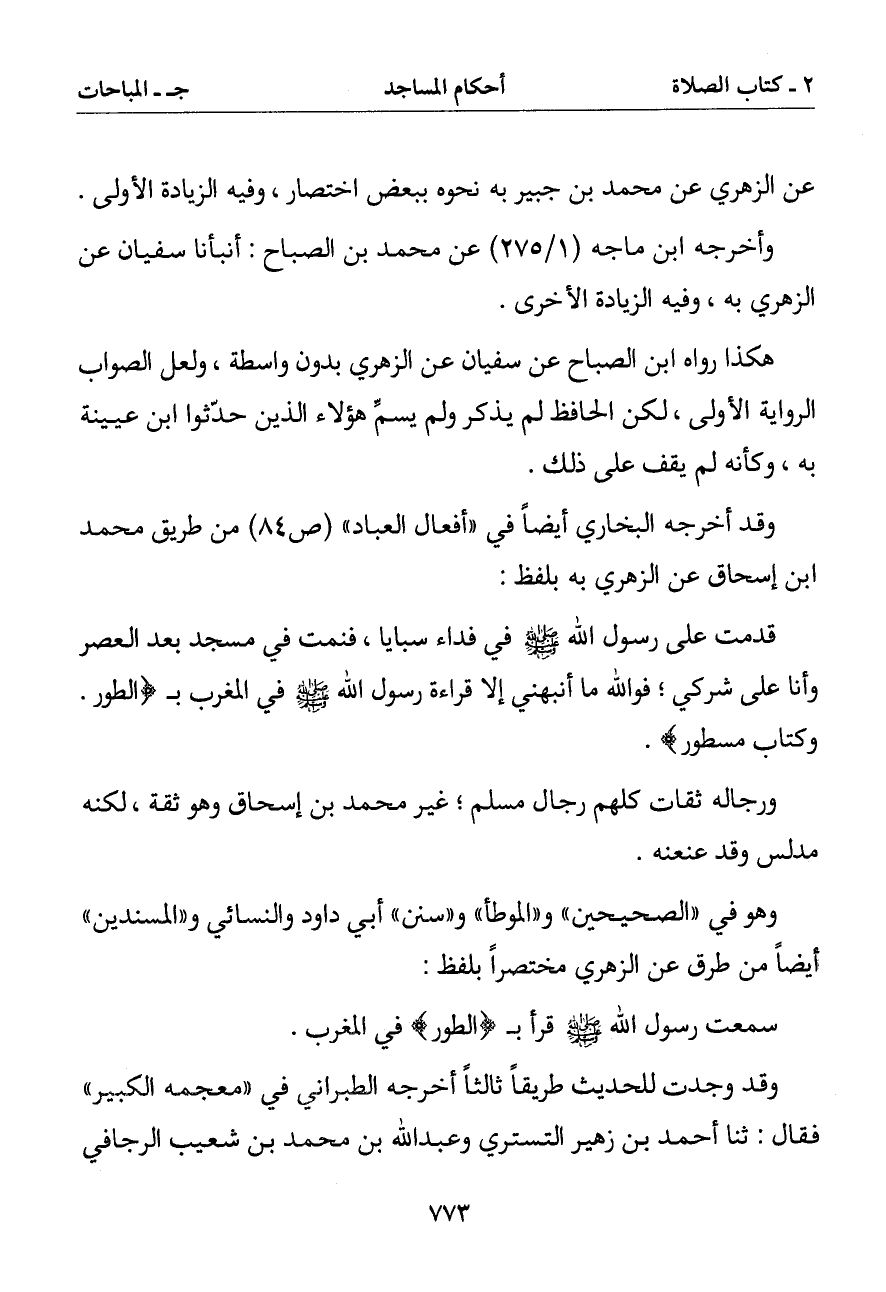 وأخرجه ابن ماجه عن محمد بن الصباح: أنبأنا سفيان عن الزهري به وفيه الزيادة الأخرى