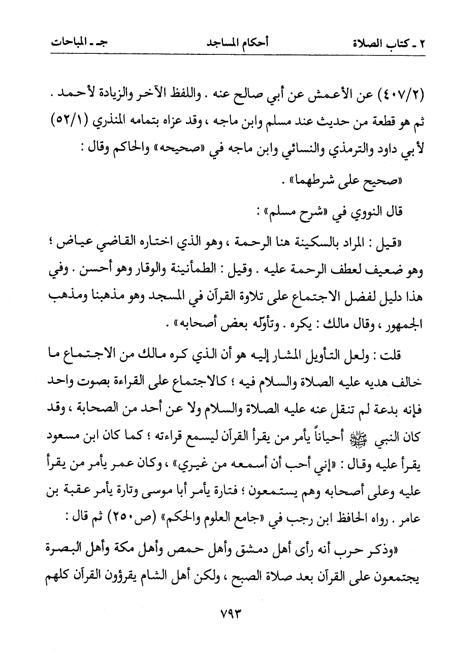 (وذكر حرب أنه رأى أهل دمشق وأهل حمص وأهل مكة وأهل البصرة يجتمعون على القرآن بعد صلاة الصبح ولكن أهل الشام يقرؤون القرآن كلهم