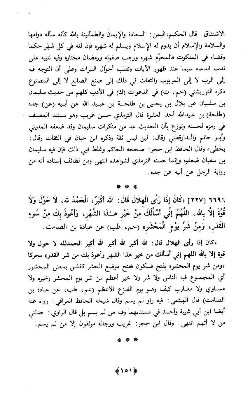 227 - (كَانَ إِذا رأى الْهلَال قَالَ الله أكبر الْحَمد لله لَا حول وَلَا قُوَّة إِلَّا بِاللَّه اللَّهُمَّ إِنِّي أَسأَلك من خير هَذَا الشَّهْر وَأَعُوذ بك من سوء الْقدر وَمن شَرّ يَوْم الْمَحْشَر) حم طب عَن عبَادَة بن الصَّامِت