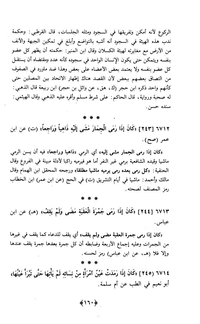 243 - كَانَ إِذا رمى الْجمار مَشى إِلَيْهِ ذَاهِبًا وراجعا ت عَن ابْن عمر // صَحَّ //