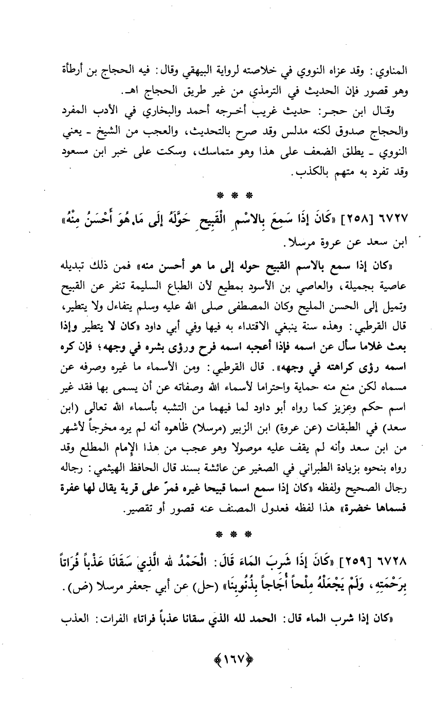 258 - (كَانَ إِذا سمع بِالِاسْمِ الْقَبِيح حوله إِلَى مَا هُوَ أحسن مِنْهُ) ابْن سعد عَن عُرْوَة مُرْسلا