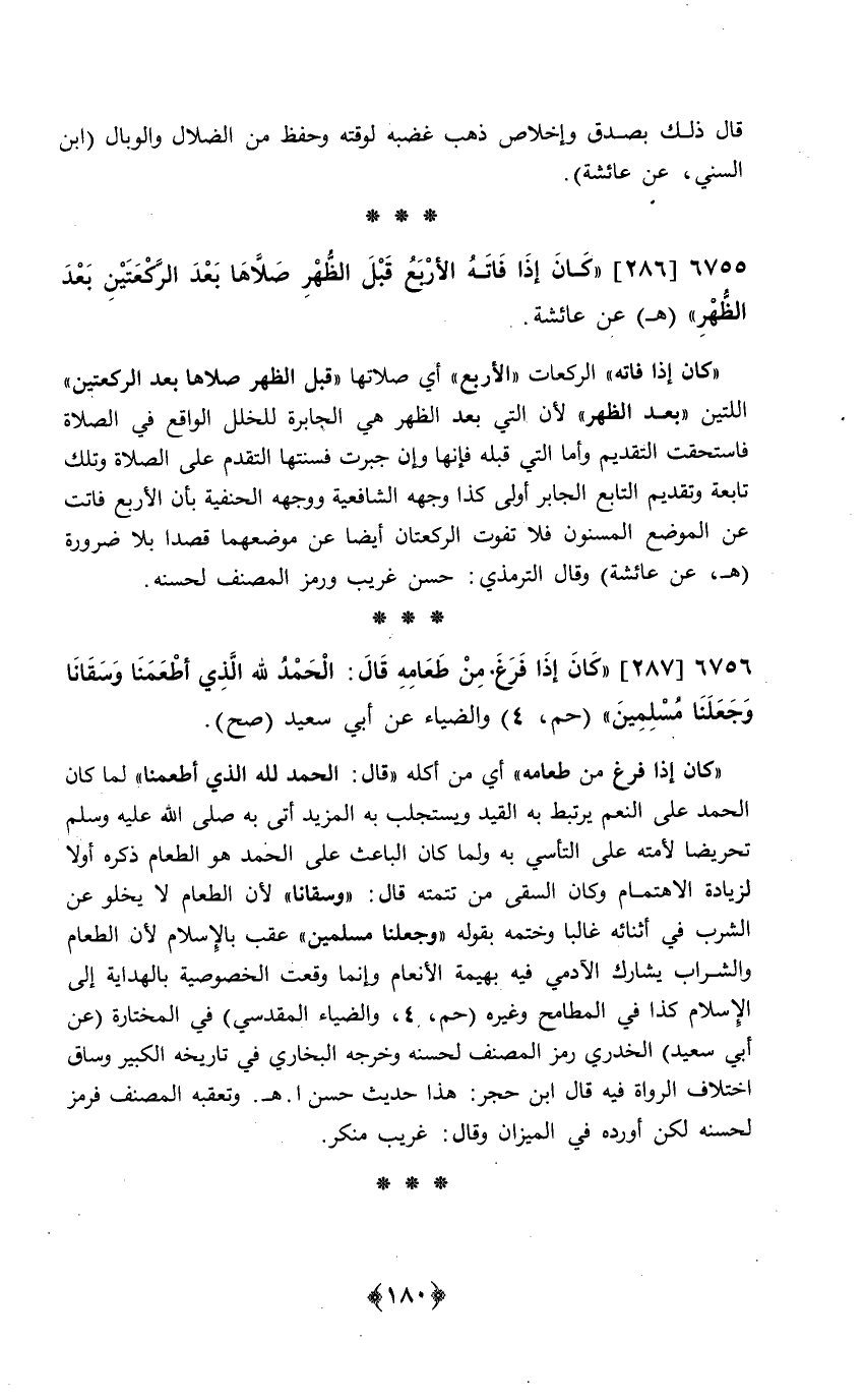 286 - (كَانَ إِذا فَاتَهُ الْأَرْبَع قبل الظّهْر صلاهَا بعد الرَّكْعَتَيْنِ بعد الظّهْر) هـ عَن عَائِشَة
