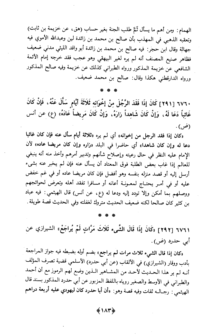292 - كَانَ إِذا قَالَ الشَّيْء ثَلَاث مَرَّات لم يُرَاجع الشِّيرَازِيّ عَن أبي حَدْرَد ض