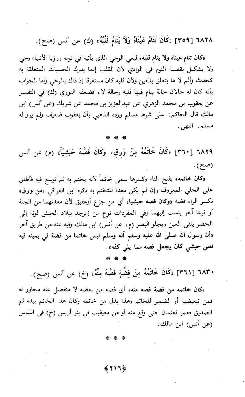 359 - (كَانَ تنام عَيناهُ وَلَا ينَام قلبه) ك عَن أنس // صَحَّ //