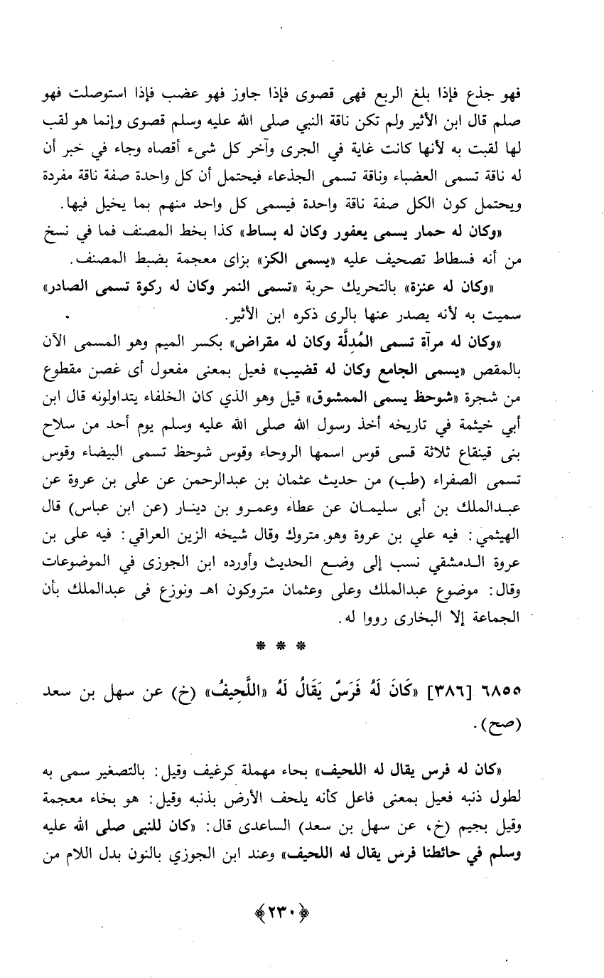 386 - (كَانَ لَهُ فرس يُقَال لَهُ اللحيف) خَ عَن سهل بن سعد // صَحَّ //