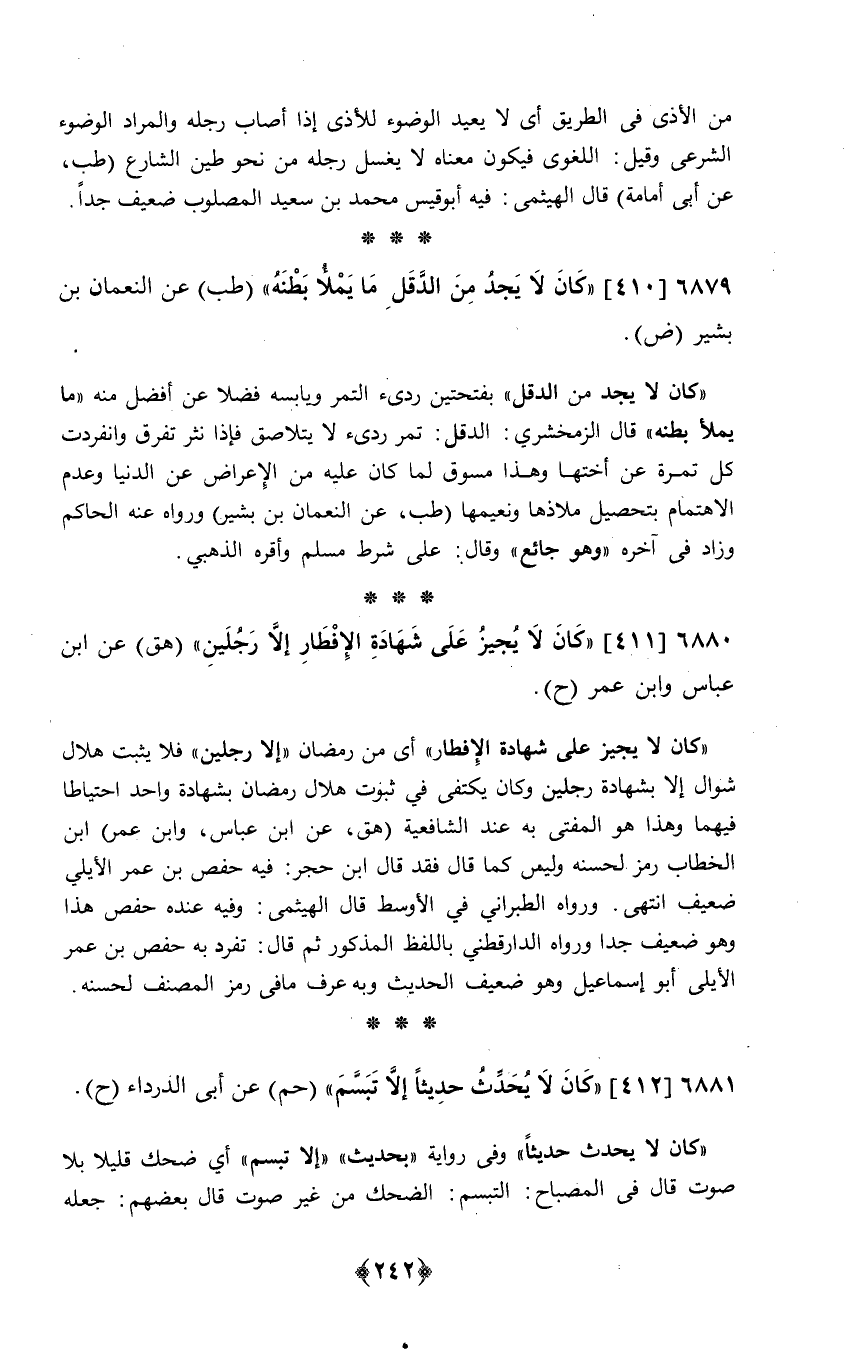 410 - (كَانَ لايجد من الدقل مَا يمْلَأ بَطْنه) طب عَن النُّعْمَان بن بشير ض