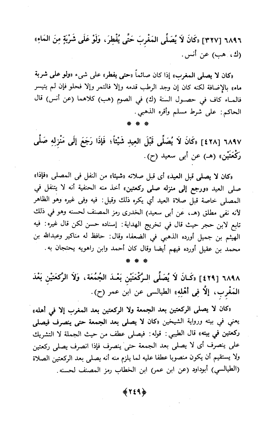 429 - (كَانَ لَا يُصَلِّي الرَّكْعَتَيْنِ بعد الْجُمُعَة وَلَا الرَّكْعَتَيْنِ بعد الْمغرب إِلَّا فِي أَهله) الطَّيَالِسِيّ عَن ابْن عمر ح