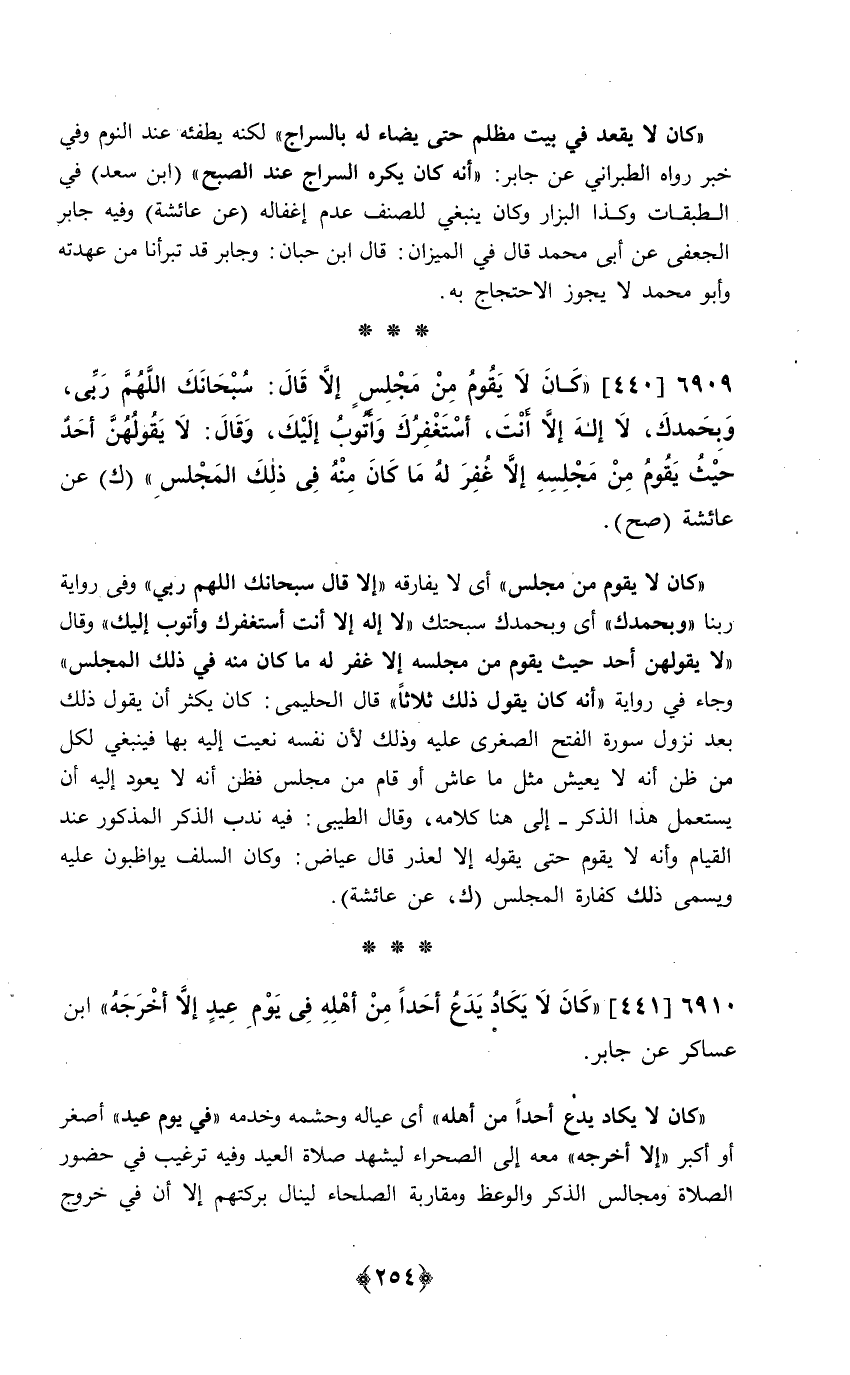 440 - (كَانَ لَا يقوم من مجْلِس إِلَّا قَالَ سُبْحَانَكَ اللَّهُمَّ رَبِّي وَبِحَمْدِك لَا إِلَه إِلَّا أَنْت أستغفرك وَأَتُوب إِلَيْك وَقَالَ لَا يقولهن أحد حَيْثُ يقوم من مَجْلِسه إِلَّا غفر لَهُ مَا كَانَ مِنْهُ فِي ذَلِك الْمجْلس) ك عَن عَائِشَة // صَحَّ //