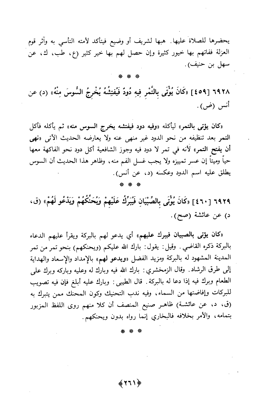 460 - (كَانَ يُؤْتى بالصبيان فيبرك عَلَيْهِم ويحنكهم وَيَدْعُو لَهُم) ق د عَن عَائِشَة // صَحَّ //