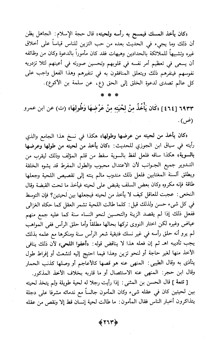 464 - (كَانَ يَأْخُذ من لحيته من عرضهَا وطولها) ت عَن ابْن عَمْرو ض