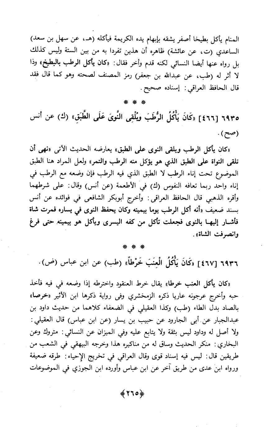 466 - (كَانَ يَأْكُل الرطب ويلقي النَّوَى على الطَّبَق) ك عَن أنس // صَحَّ //