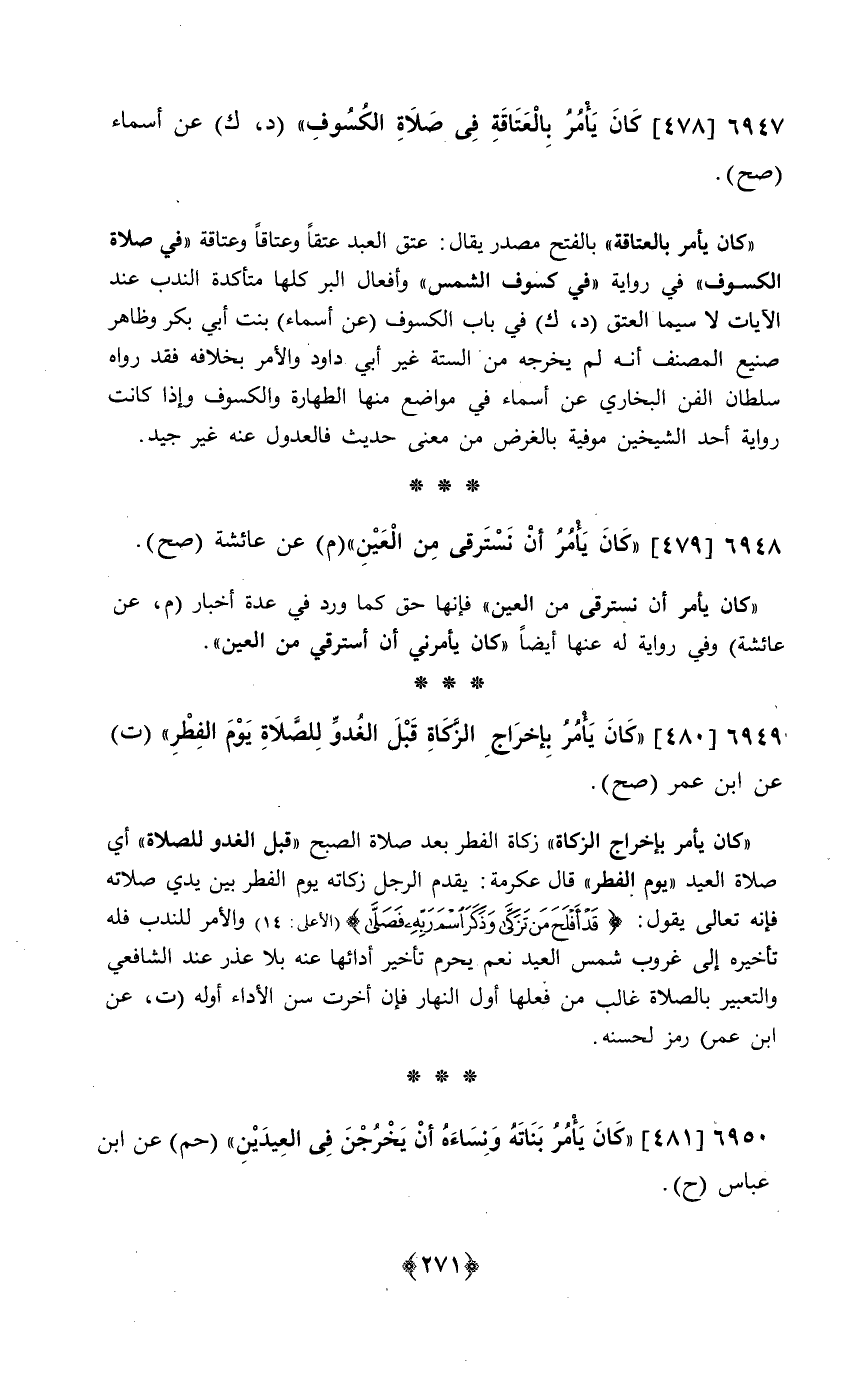 480 - (كَانَ يَأْمر بِإِخْرَاج الزَّكَاة قبل الغدو للصَّلَاة يَوْم الْفطر) ت عَن ابْن عمر // صَحَّ //
