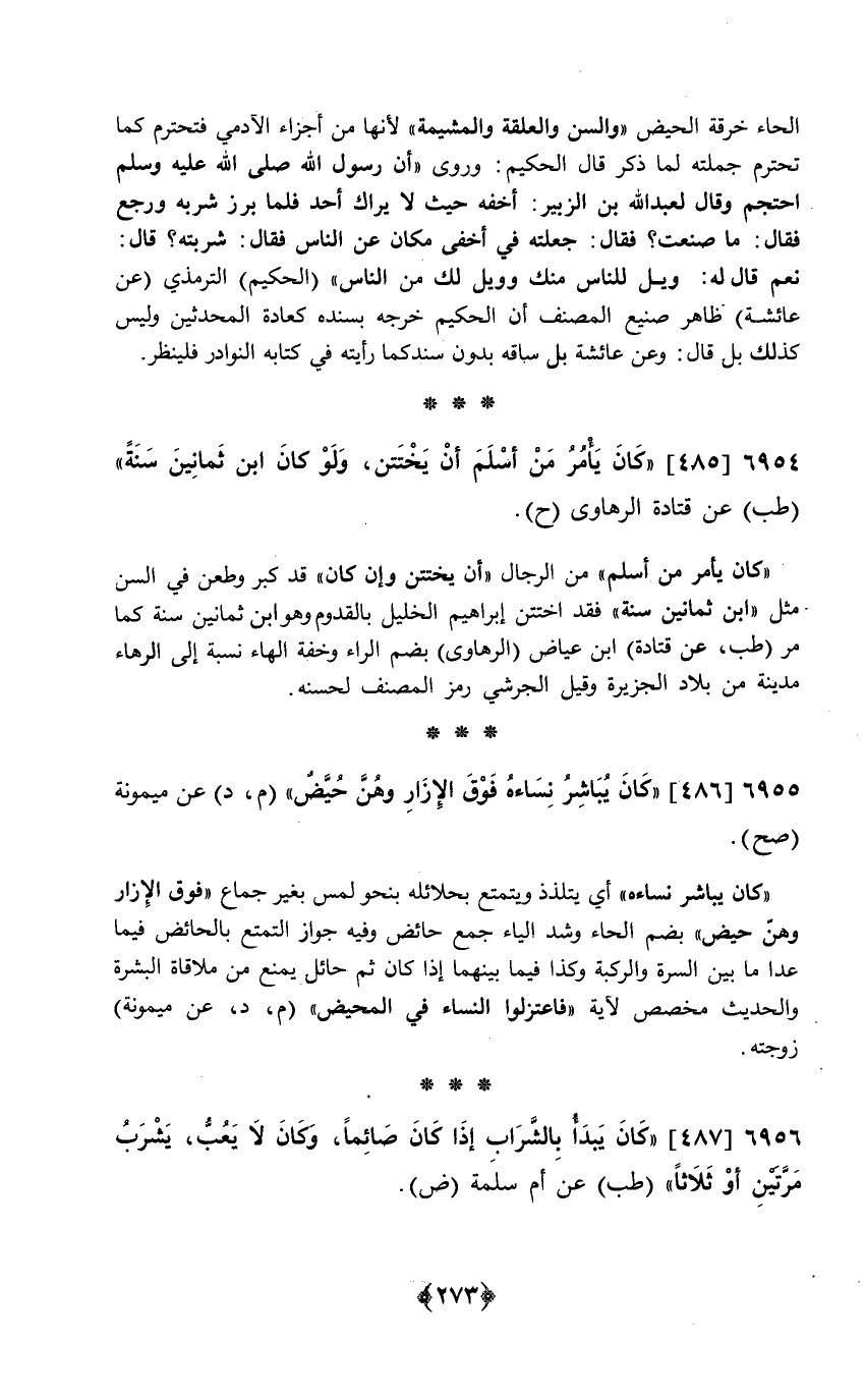 486 - (كَانَ يُبَاشر نِسَاءَهُ فَوق الْإِزَار وَهن حيض) م د عَن مَيْمُونَة // صَحَّ //
