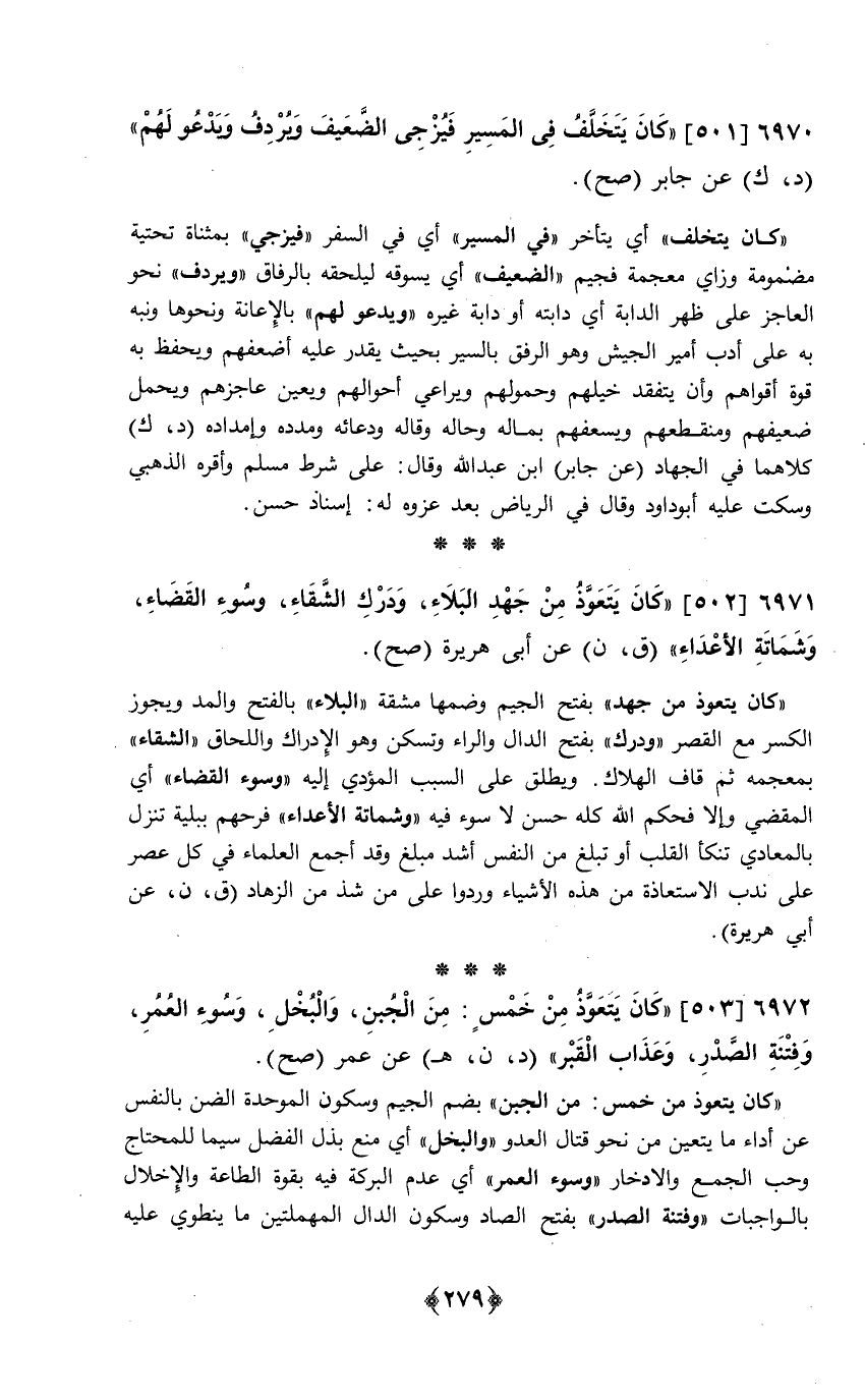 50 - (كَانَ يتَخَلَّف فِي الْمسير فيزجي الضَّعِيف ويردف وَيَدْعُو لَهُم) د ك عَن جَابر // صَحَّ //