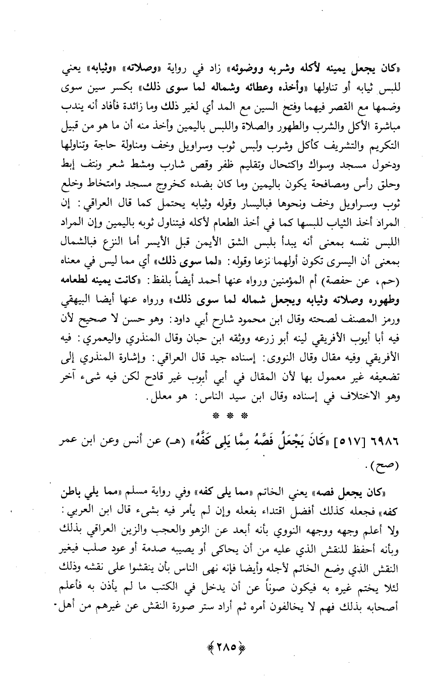 517 - (كَانَ يَجْعَل فصه مِمَّا يَلِي كَفه) هـ عَن أنس وَعَن ابْن عمر // صَحَّ //